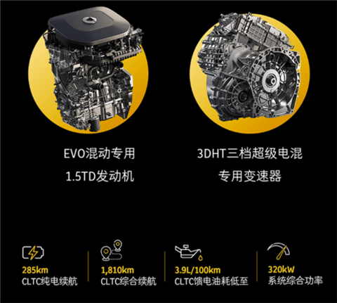 搭载磷酸铁锂电池,容量暂时未知,但纯电续航里程285公里(CLTC),综合续航1810公里,CLTC馈电油耗低至3.9升/百公里。