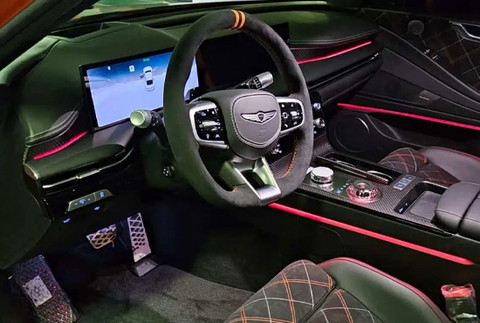 内饰方面,捷尼赛思G80 Magma Special同样融入了大量“Magma”专属设计元素。例如,方向盘上的橙色回正标识、座椅上菱形交错的白橙配色条纹,以及多处细节缝线装饰,均有效提升了车内的运动属性。此外,新车大量使用Alcantara材质进行包覆,并配备带橙色背板的Recaro高性能运动座椅,中控台等区域辅以碳纤维饰板点缀,在豪华质感与运动气息之间实现了良好平衡。