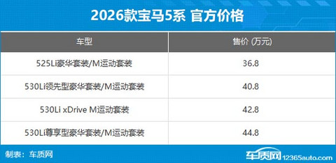 日前,我们从华晨宝马官方获悉,旗下2026款宝马5系和宝马i5正式迎来上市,其中新款宝马5系提供7款车型,售价区间为36.8-44.8万元;2026款宝马i5提供3款车型,售价区间36.8-45.8万元。作为年度改款车型,新车主要针对配置进行升级,同时官方指导价大幅下调7-9万元。