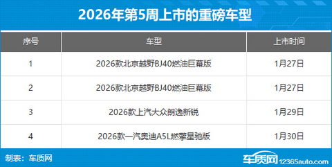 回顾上周国内车市,北京越野推出了新款BJ40,新车在原有基础上增加了多项改装套件,提升了越野性能;新款上汽大众朗逸新锐上市,新车调整了部分配置;一汽奥迪A5L新增燃擎星驰版车型,新车在外观、配置上均有亮点。接下来我们将对上周上市新车进行汇总,看看有没有您喜欢的!
