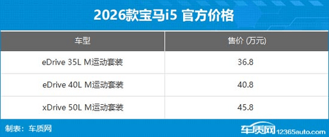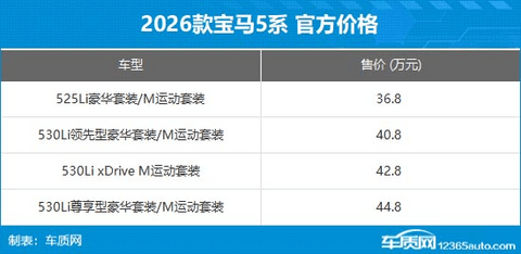 2月2日,2026款宝马5系和宝马i5正式迎来上市,其中新款宝马5系提供7款车型,售价区间为36.8-44.8万元;2026款宝马i5提供3款车型,售价区间36.8-45.8万元。作为年度改款车型,新车主要针对配置进行升级,同时官方指导价大幅下调7-9万元。