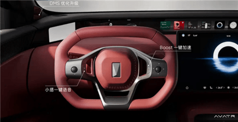 内饰方面,新款阿维塔12进行了多处细节优化,方向盘新增小塔一键语音和Boost一键加速物理按键,DMS疲劳驾驶预警系统完成升级;门板扶手区域优化应急拉手并新增车窗开关按键,下方增设开放式储物区,车顶采用天鹅绒材质包裹,后排还新增AVATRMAG连接点,豪华感与实用性双提升。