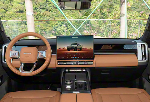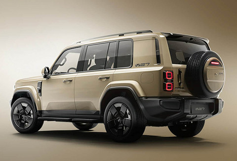 外观方面,新车采用全新设计语言,在融入诸多经典硬派越野车元素的同时,也展现出更具未来感的视觉风格。窄条幅式前格栅搭配方形灯腔与环形灯带组合,造型极具辨识度;前包围处大尺寸黑色护板进一步强化越野气质,使整车看上去力量感十足。