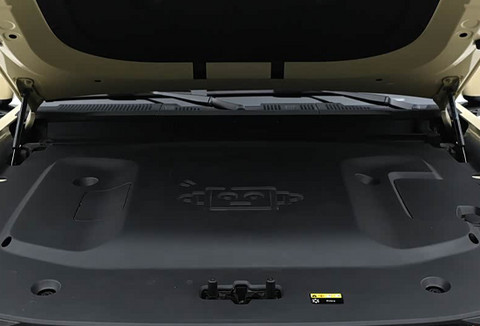 车身侧面整体轮廓方正稳重,虽未刻意采用过于锋利的硬朗线条,但通过饱满的型面设计营造出强烈气场。尺寸方面,新车长宽高分别为5055mm*1976mm*1894mm,轴距达到2910mm,为车内空间表现奠定了良好基础。