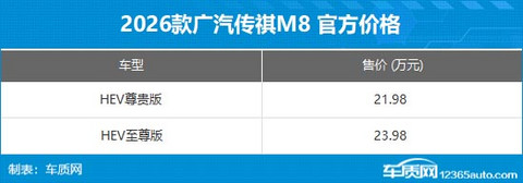2026款传祺M8 HEV上市 售价21.98-23.98万元