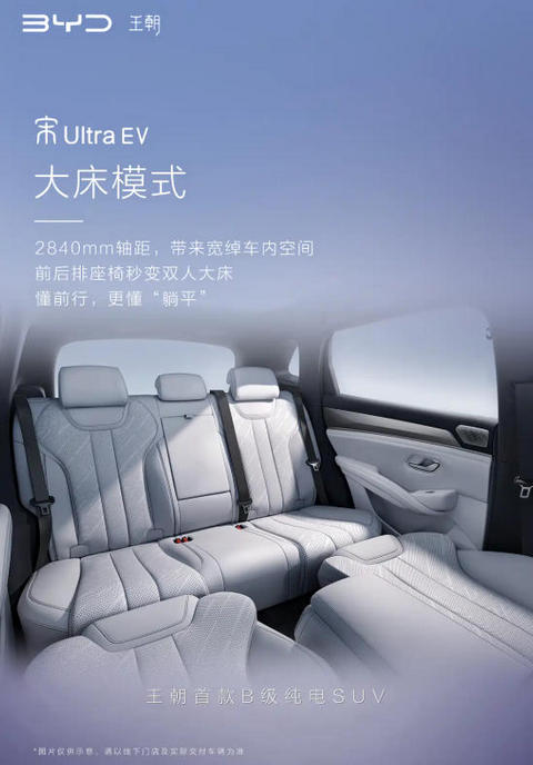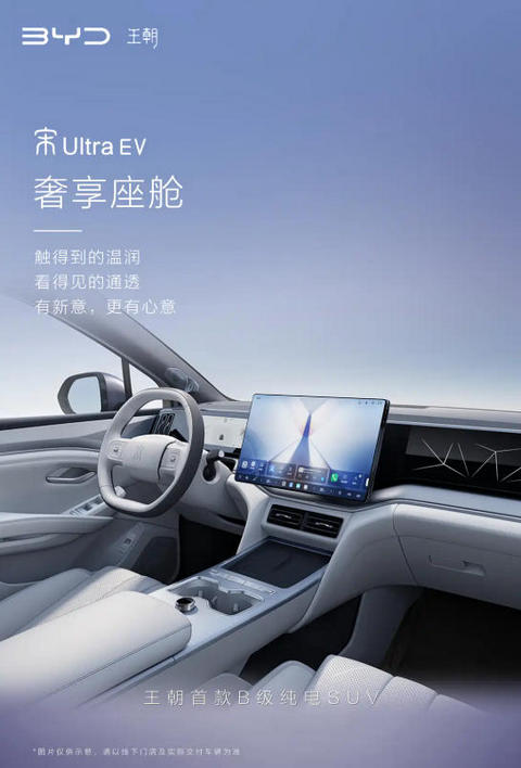 比亚迪官方发布王朝首款B级纯电SUV――宋Ultra EV的内饰官图,新车定位中型纯电SUV,网传预计售价18万元左右,凭借独特的大床模式和丰富配置引发关注。