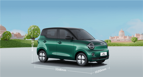 车侧部分,新车采用悬浮式车顶,后视镜也进行了黑化处理,颜值更高。车身颜色部分,该车目前推出了灰萌萌、绿悠悠和白绒绒三款颜色,未来有望增加更多选择。尺寸部分,其长宽高分别为3268mm*1520mm*1575mm,轴距2190mm,采用四门四座布局。