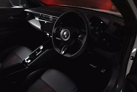 有趣的是,由于日本当地法规要求牌照位置不能过低,但过高又会挡住辅助驾驶传感器,所以原本置于中央位置的牌照架被放置在侧边。车身配备大量碳纤维装饰,前包围、外后视镜均以碳纤维包裹,搭配花瓣式轮毂,新潮气息瞬间拉满。