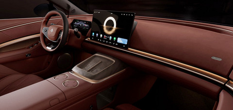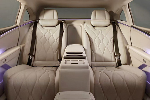 内饰采用环抱式座舱设计,配备三辐式多功能方向盘、12.3英寸全液晶仪表和15.6英寸悬浮中控屏,操作界面高度集成化。后排通过剧院式布局和超长腿部空间,搭配Nappa真皮菱形格纹缝线座椅,形成独立的豪华舒享区域。