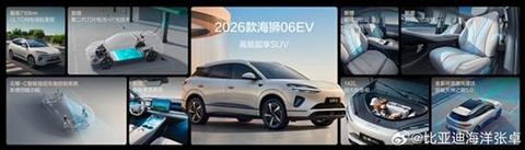比亚迪2026款海狮06EV正式上市,新车定位中型纯电SUV,共推出4款配置,官方售价15.99-17.99万元。