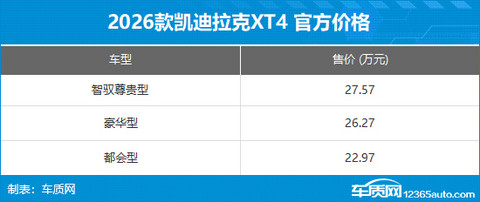 2026款凯迪拉克XT4上市 售价22.97万元起