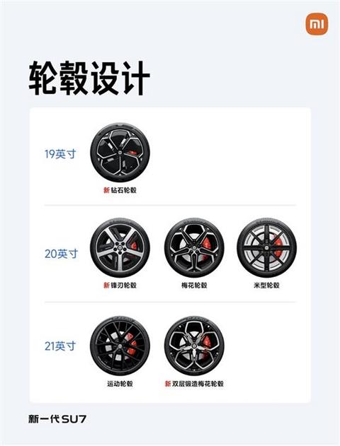 此前雷军在直播中还透露,新一代小米SU7一共有6款轮毂可选: