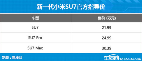 新一代小米SU7上市 售价21.99-30.99万