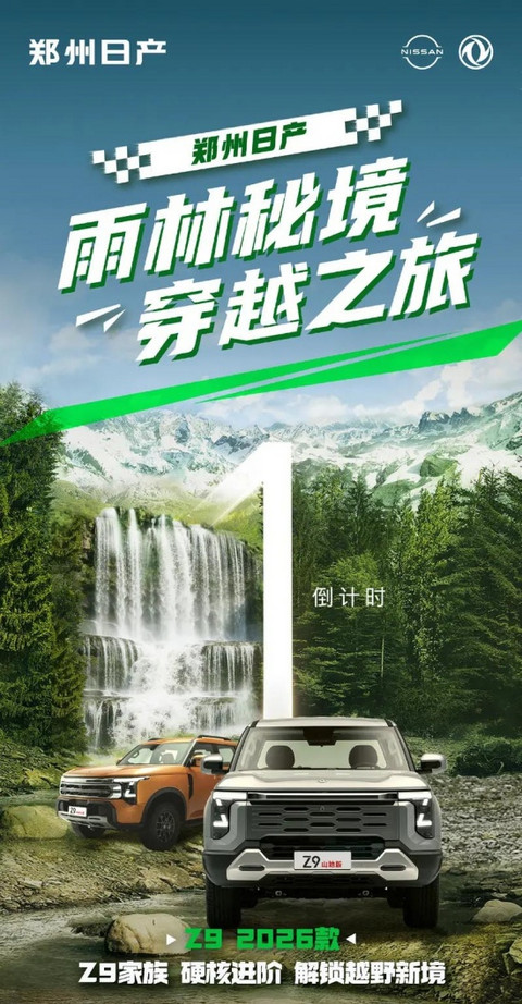 日前,郑州日产正式宣布旗下2026款Z9家族将于3月26日正式上市。此次上市活动将在云南西双版纳雨林秘境中举行,以一场穿越原始雨林的极限挑战,全方位展现Z9家族的硬核越野性能与全场景适应能力。