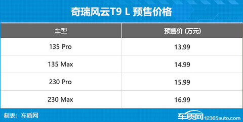 奇瑞风云T9L开启预售 预售价13.99万元起