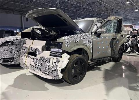 从环境看,这辆车应该是在中汽中心进行了碰撞测试,而后遭到泄露。