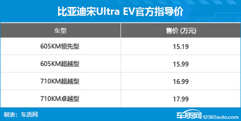 比亚迪宋Ultra EV上市 售价15.19-17.99万