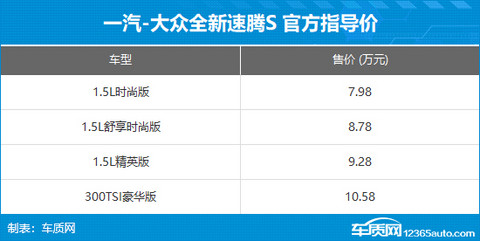 一汽-大众全新速腾S上市 售7.98-10.58万元
