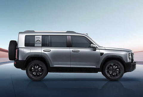 车侧线条棱角分明,勾勒出很强的力量感。尺寸方面,新车长宽高分别为4912mm*1950mm*1905mm,轴距2850mm。官方表示,新车的空载最小离地间隙为221mm,涉水深度可达580mm。