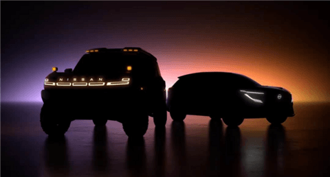 从预告图来看,一款高度疑似为硬派越野SUV,另一款则更像是轿跑式运动SUV,两车都有日产家族最新设计语言,预计均为新能源车型,并且未来大概率都会量产。