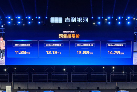 4月16日,吉利银河星耀7正式开启预售,新车共推出4款车型,官方预售价区间为11.28-14.28万元。同时,官方还推出星耀升舱礼、星耀定制礼等预售权益。