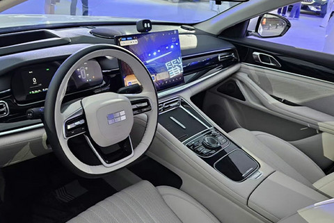 内饰方面,新车采用环抱式座舱布局,大面积软质材料包覆,顶棚采用超过2�O的一体成型设计,搭配皮质座椅以及木纹、金属饰板,整体质感较为出色。配置方面,新车配备10.25英寸全液晶仪表与15.6英寸悬浮式中控屏,搭载银河Flyme Auto 2智能座舱系统。同时还提供电子怀挡、多功能皮质方向盘、256色氛围灯、16扬声器Flyme Sound音响系统、智能香氛以及全景天窗等配置,兼顾科技感与舒适性。