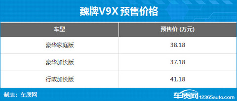 魏牌V9X开启预售 预售价37.18-41.18万元