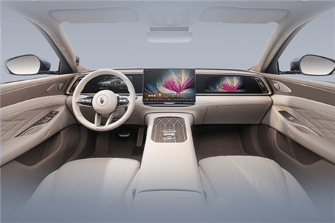 内饰全面换新,一眼看去就是鸿蒙座舱的典型风格,配备全液晶仪表盘、悬浮式中控屏和副驾驶屏,搭配多处细节辅以的木纹饰板、菱形格皮质等,展现科技与豪华感。