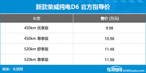 新款荣威纯电D6正式上市 售价9.98-11.98万