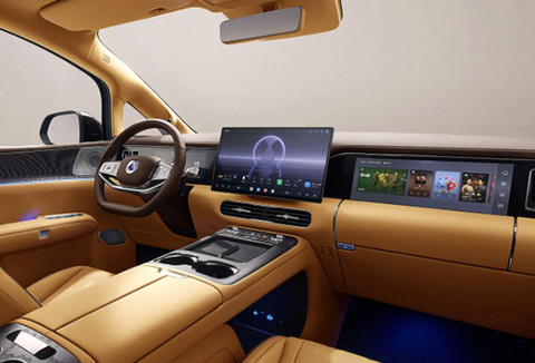 内饰最引人注目的升级就是提供了10块屏幕,10.25英寸液晶仪表、21英寸HUD抬头显示、15.6英寸中控屏、流媒体后视镜以及15.6英寸副驾屏均位于前排。其中,副驾屏为开合式智能屏,不仅可以自动适配屏显,而且下方形成的小桌板还可承重5kg,丰富更多使用场景。后排方面,新车还提供了17.3英寸吸顶屏、双磁吸头枕屏以及双二排座椅触控屏。
