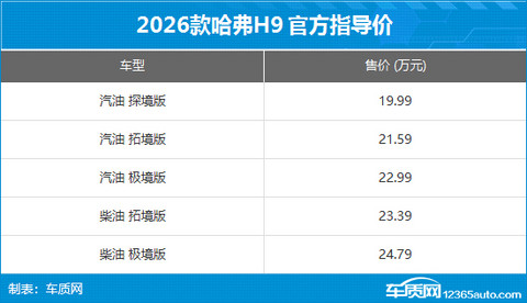 2026款哈弗H9上市 售价19.99-24.79万元