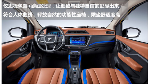 在内饰方面,云100plus也有了很大的改变。全新的内饰设计以居家风格为主,颜色主要以浅棕与深黑混搭,同时应用了一些蓝色线条元素,整个内饰沉稳又不失现代感。仪表板采用了仿皮全包覆+缝线处理,独具匠心的设计让车内整体质感得到了很大的改观。同时浅色的内饰降低了光线对驾驶员眼睛的刺激,有效的防止了驾驶途中可能出现的部分危机。云100plus选用了人体工程力学仿皮高档座椅,这款座椅符合人体曲线,透气和散热性良好,乘坐舒适度极高。科学的设计减少了乘坐者的臀背部压迫面积,避免颈肩腰的劳损,可以有效减缓长时间驾驶的疲劳感。