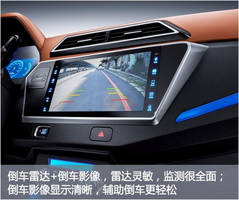 方向盘后方是一个7英寸的彩色液晶组合仪表盘,支持三种仪表显示模式,配合物理指示灯,可实时反馈车速、电量等车辆信息,使用起来很有未来科技感。我们评测到的云100plus是高配车型,配备有倒车雷达+倒车影像,雷达灵敏,监测很全面,而倒车影像十分清楚,使得倒车过程变得更轻松。