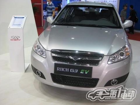 9月8日,奇瑞汽车携旗云3-ISG、瑞麒M1-EV、瑞麒G5-EV、瑞麒G3-EV四款新能源汽车亮相2011中国国际汽车零部件展览会————新能源汽车展。在展会现场的工作人员向第一电动网作者介绍,这四款车预计明年将会上市。
