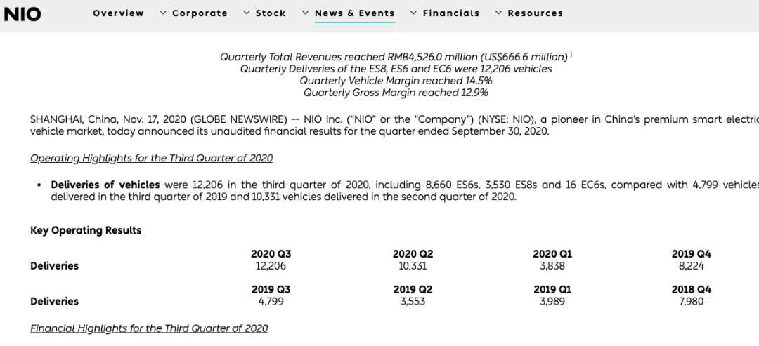 从数据来看,2020 年第三季度,蔚来总共交付了 12,206 辆 ES8、ES6 和 EC6,同比增长 154.3%;环比增长 18.1%,2020 年 10 月交付量达到 5,055 辆,再次创造月度交付新高。