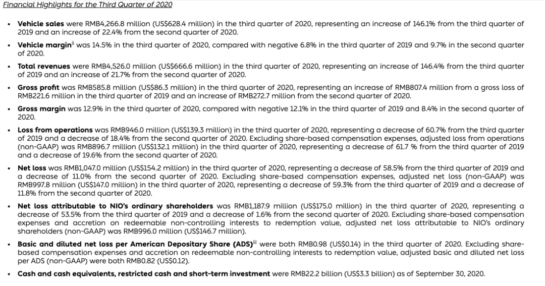 在这样的情况下,蔚来汽车业务毛利率大概率会延续前三个季度的势头:2020 年 Q3 ,蔚来的汽车业务毛利率是 14.5%,2020 Q2 是 9.7%。