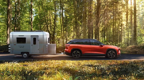 此外,为了满足很多用户心心念念的露营场景,蔚来 ES7 在尾部配备了隐藏式电动挂钩,并配备了专属的拖挂模式,最大总质量可达 2 吨,并支持对被拖挂设备的供电。