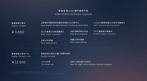 套餐一,后装升级费用是9600,同时支持老用户使用积分购买,最多可抵扣 1 万积分,也就是 1000 元。算下来,就是 8600 现金+ 1 万积分;