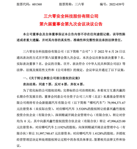 近日,360公司发布公告称,将转让所持有的3.532%的哪吒汽车股权,转让对价为0元,消息一出引来不少外界猜测,难道哪吒汽车要准备上市了?