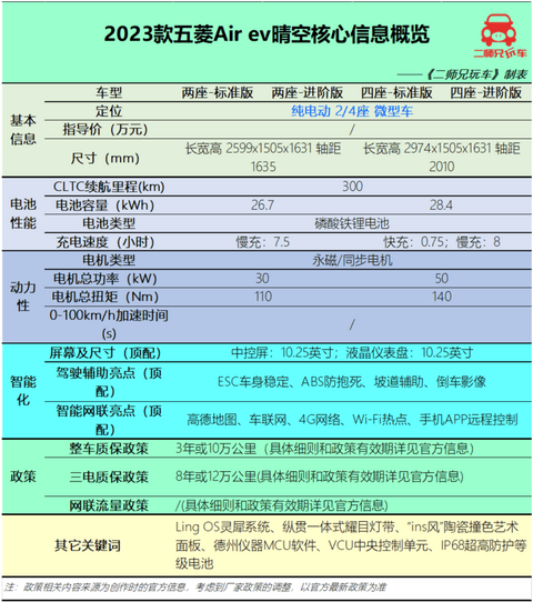五菱Air ev晴空基本信息速览