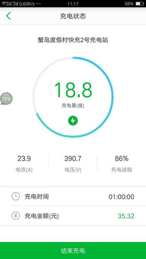 SOC77%,此时电流回到了大家熟悉的35A。这让我想起了EV英雄会的京沪之旅,12月的北方,每天早上的前两次充电都是这个说大不大说小不小的35兄陪伴着茶树父子俩,不论气温多么低,也不论寒风怎么吹,35兄铁面如山绝不动摇的伟岸形象在茶树心中铭记。