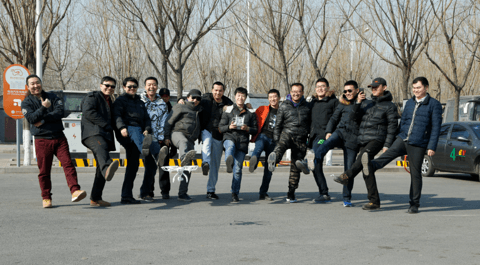 自嗨组的合影,有日行灯的三位格外的亮眼。最右边的就是本次茶树的对手,熊辉和他的长安逸动EV。