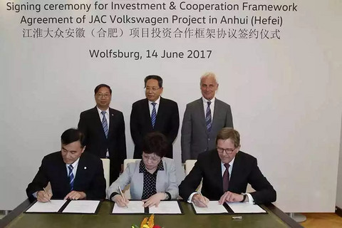同时,江淮大众新能源汽车合作项目不仅局限于新能源汽车领域的纯电驱动和插电式混合动力,还将共拓新领域,在移动出行、车辆互联、大数据、二手车平台、再制造等新业务领域进行合作。