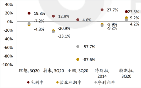 那么,我们来对比造车新势力的财务表现,2020Q3: