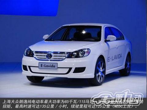 朗逸纯电动轿车是上海大众针对中国市场量身打造的首款电动车。该车型由安装在车头部位的电动机驱动,动力表现出色,最大功率为85千瓦/115马力,可提供最大为270牛?米的扭矩,从静止加速到百公里/小时用时约11秒,最高时速可达135公里/小时,续驶里程可达125公里(NEDC工况)。