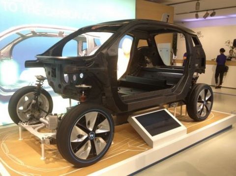 生活模块与驱动模块通过12 公斤胶水粘合在一起,电池电机等驱动系统都安置在驱动模块上。驱动模块由铝合金构成,为了减少生产原生铝的温室气体排放,宝马尽量多的采用回收过来的次生铝。”通过这种方式,能降低80% 的碳排放。”