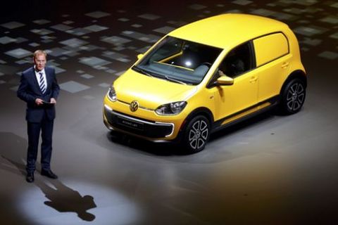 在本周开幕的第六十五届德国法兰克福车展上,大众汽车展出了旗下两款新电动车,以大众规格最小的Up!车型为蓝本的e-Up!,以及e-Golf————该车为高尔夫紧凑型掀背车的电池动力版本。