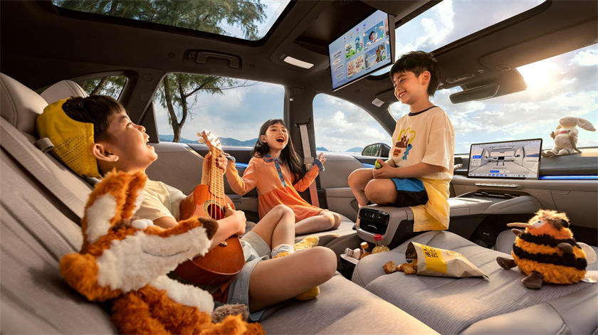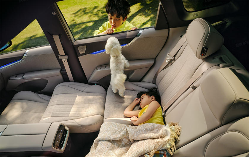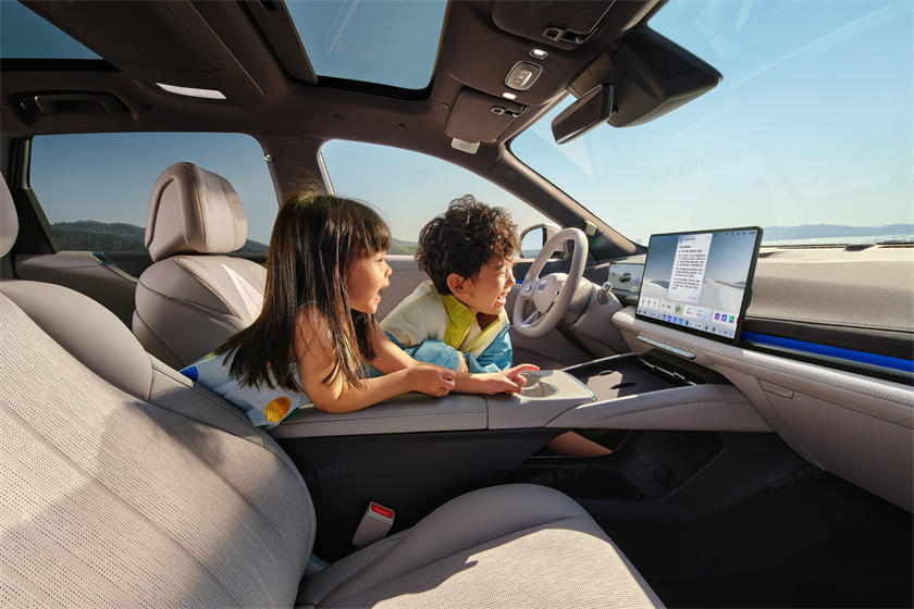 儿童守护方面,全系标配最新一代豆包大模型、银离子保鲜冷暖箱、南德TÜV护眼智慧顶灯、100%全遮光隐私遮阳帘、带后向儿童座椅头部保护区的气帘、五星电磁辐射防护、零甲醛认证座舱、智能儿童守护模式、四音区独立语音识别。