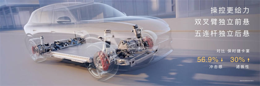 问界M6全系标配华为途灵平台,前双叉臂后五连杆独立悬架,闭式空气弹簧支持5挡80mm范围高度调节,阻尼调节频率30次每秒。前四活塞固定式刹车卡钳,百零刹停距离33.8米。搭载道路预瞄与HUAWEI DATS 3.0,御水缓行模式应急涉水深度700mm,猫头鹰极致转向最小转弯半径5.5米。白车身湿区防腐处理比例100%。