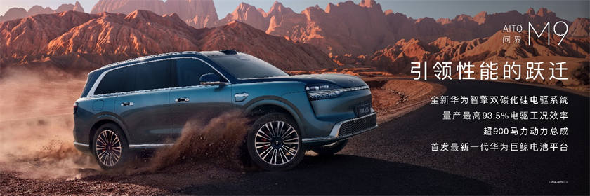 全新一代问界M9采用最新一代途灵全主动底盘平台,融合智能预瞄与智能驾控。搭载全新华为智擎双碳化硅电驱系统,电驱工况效率93.5%,三电机版综合功率超900马力,匹配新一代华为巨鲸电池平台。